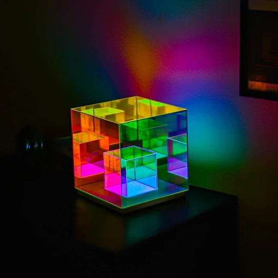 It emits a charming luminous glow that reflects a spectrum of colors around the room, creating a warm and lively ambiance. Perfect for bedrooms, offices, or creative spaces to add a modern artistic touch.