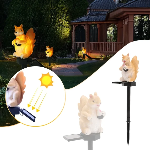 This solar Squirrel light adds a decorative touch to your garden, driveway, or patio, offering both beauty and function with its cute Squirrel design.